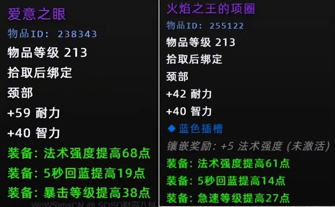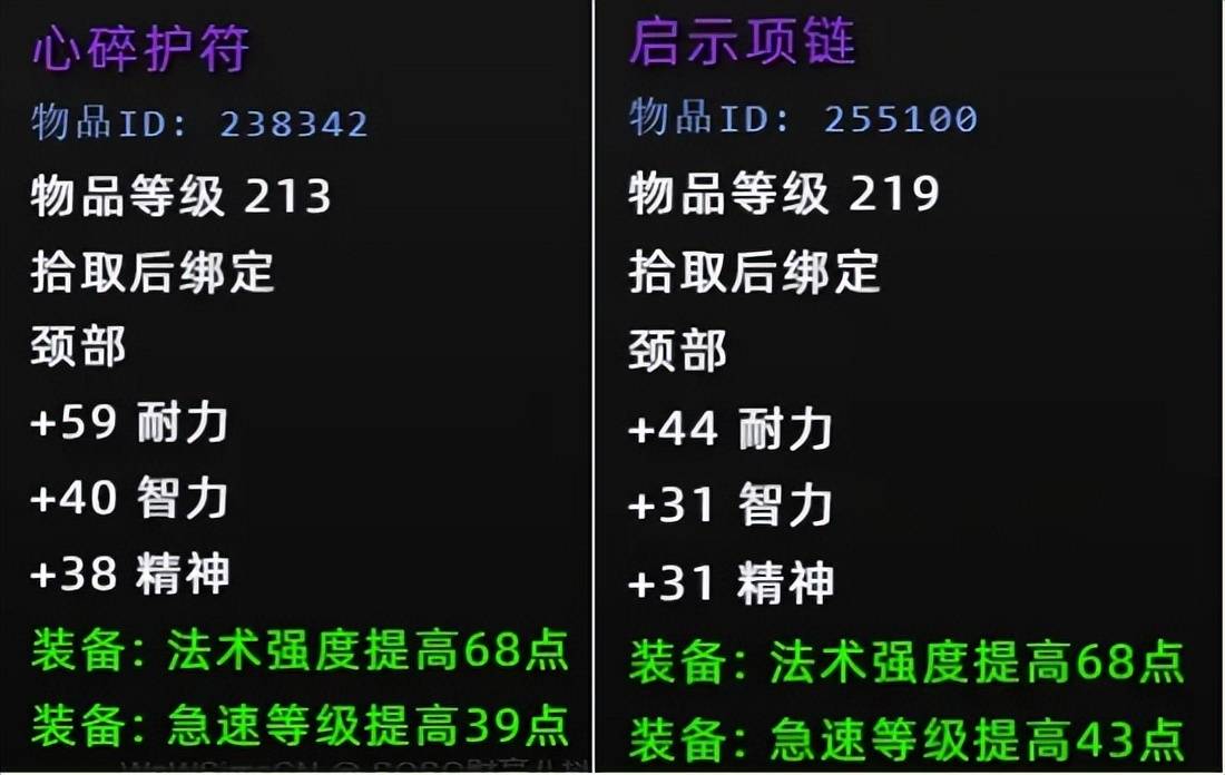 情人节项链对于破甲职业需求更高一些,比如猎人,如果你拥有4+4的情况下,应该是不缺命中,使用左边的话不会浪费一点属性。