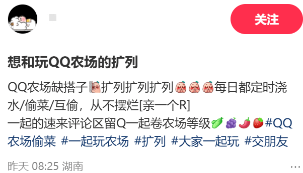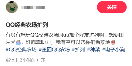 果然,不出姬的所料,而这几天定档消息一出来,玩家更是沸腾了。这两天社交媒体上,开始出现各种“菜友”来讨论《QQ经典农场》。