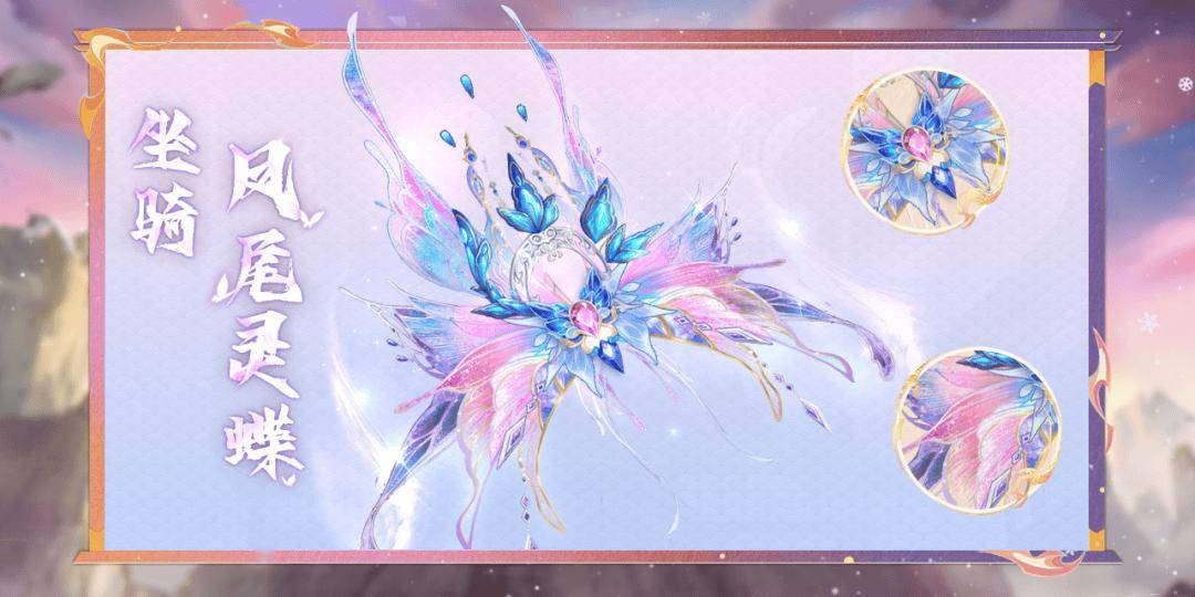 这款坐骑以凤尾蝶为原型,周身流光溢彩、玲珑剔透,琉璃般的双翼修长灵动,轻轻挥舞便自带高光,乘骑而上时,必能收获满屏艳羡,解锁属于你们的独家浪漫。