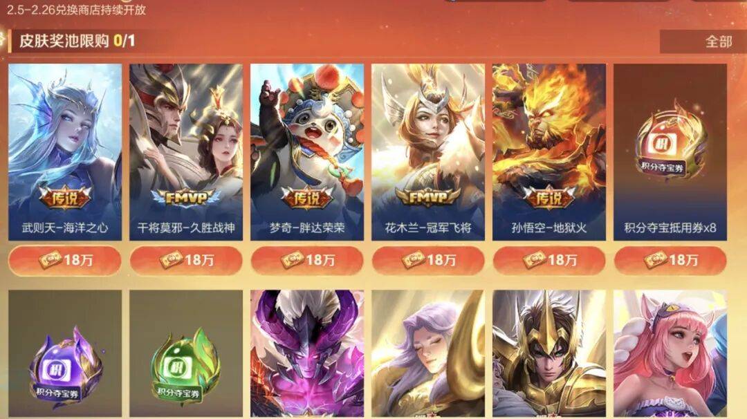 小马商店活动的奖励还是挺不错的。第一个就是兑换皮肤,池子里面一共有8款传说皮肤,包括武则天海洋之心、干将莫邪久胜战神、梦奇胖达荣荣、花木兰冠军飞将、孙悟空地狱火、宫本武藏地狱之眼、张良黄金白羊座、后羿黄金射手座。与以往不同的是,这一次不需要去刷新,只需要攒够足够的小马钱就能兑换了。传说皮肤是需要18万小马钱。