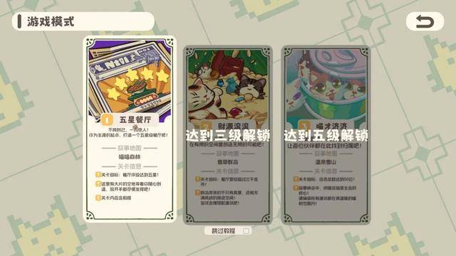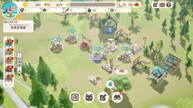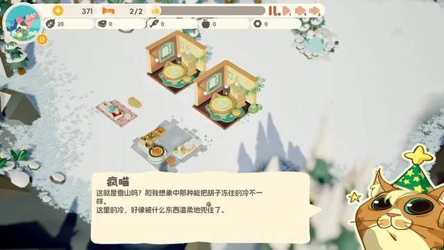 游戏包含三个地图,最初的喵喵森林兼具了教学的功能,目标是使餐厅评级达到五星,让玩家体验如何从零开始将餐厅发展壮大起来;翡翠群岛的目标则是使餐厅的营收超过三千金币。或许刚打完喵喵森林的时候会觉得小菜一碟,但在这个地图中餐厅可使用的区域会更加局促,要完成这一目标需要更加仔细地规划位置;最后一个地图是温泉雪山,这一关地目标是招募50名店员。因为位置处于雪山之中,需要让设施处于温暖的辐射范围内。这对玩家管理布局的能力有着更大的挑战,也将带来更多的乐趣!