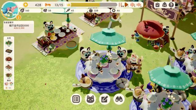 餐厅的布局是策略玩法的一大重点!虽然这个游戏整体看着都透露出一股子萌萌的气息,但是有着不低的策略性。所有一切都围绕着钱和资源运转,增加客流量需要花钱增设用餐位置、加强上菜效率也需要花钱增加服务员设施与厨房、保证食材储量则需要花钱准备农田等生产点……而要打通这些环节并让其运转起来则都需要各个岗位有小猫咪员工,这又需要修建猫咪公寓并招募员工。如何利用好餐厅的利润去进一步扩张与强化,需要做出有效的规划与判断。