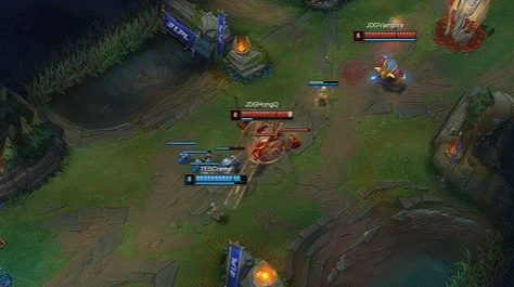 随后中路开始神人大乱斗,JDG中野配合沙皇先手逼出发条闪现,随后小奶油反手一个大招逼出沙皇闪现,随后打野奶油后知后觉地跳大进场,观众也是一脸懵。