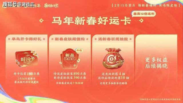 其中,就包括1000多的限时点券+3款免费的新皮肤,还有6款马年限定+6款新皮肤+5位新英雄即将上架,信息量相当大。