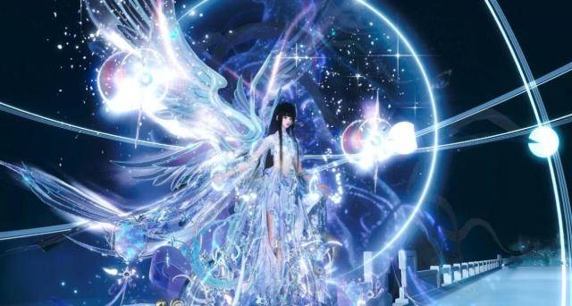 游戏里的这套时装更是美得让人挪不开眼,霜丝如练,清寒不染尘,华彩自生光,伫立在云阶上,足下幻彩氤氲,似踏千重霞霭而来,分不清是仙子披了星辰,还是星辰化作了少侠。