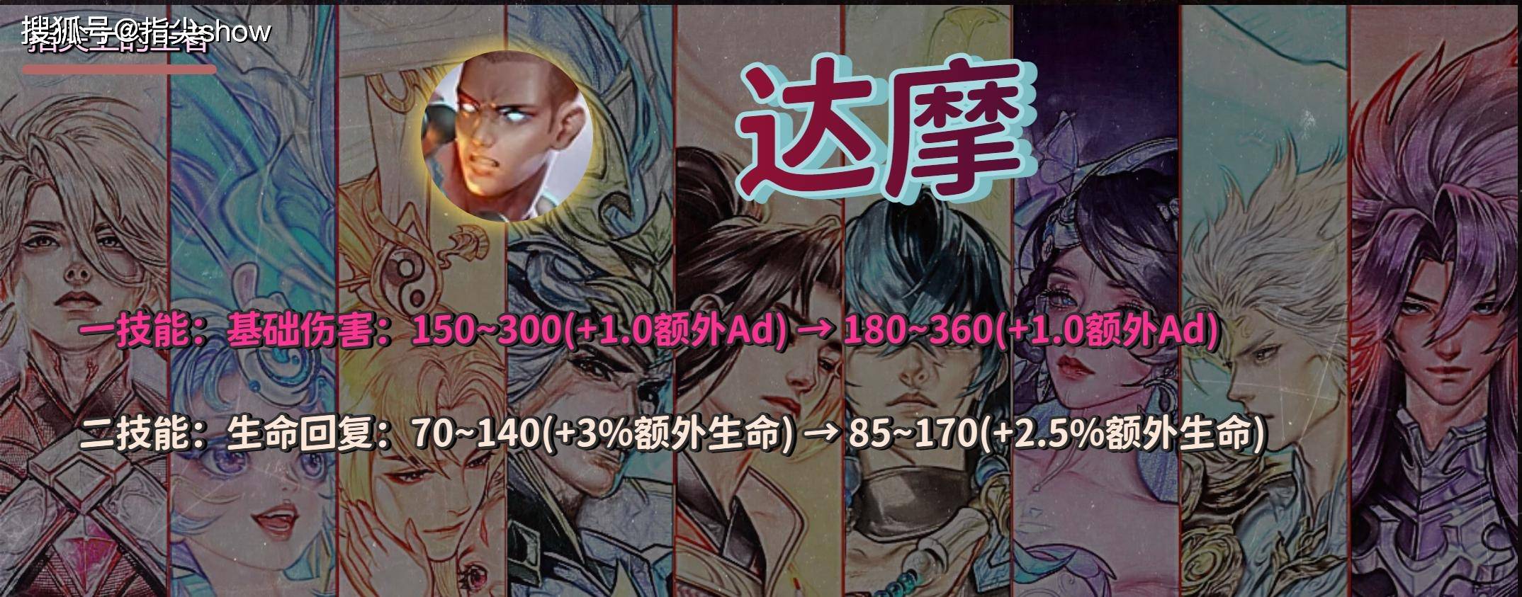 达摩的调整,是在体验服的基础上,又加强了一点二技能的基础回血,算是临上线前又加强了一下。