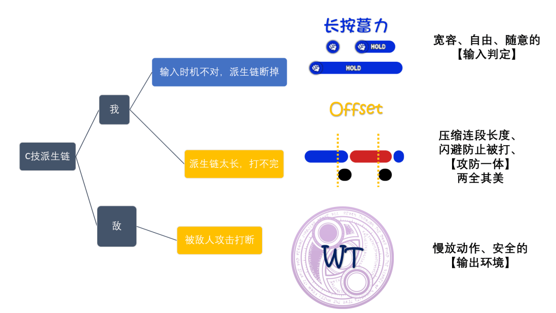 设想一下,现在你想打出 PPPPPK 的连段,但是在第四个 P 这里,你躲避了敌人攻击,按照普通 ACT 的设计模式,哪怕你触发了 WT,那也只能在 WT 内重来一遍。