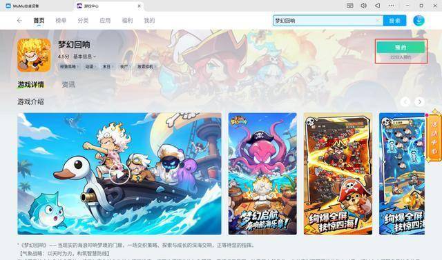 启动MuMu模拟器,在模拟器内的游戏中心搜索“梦幻回响”,点击预约,待游戏上线后即可畅玩。