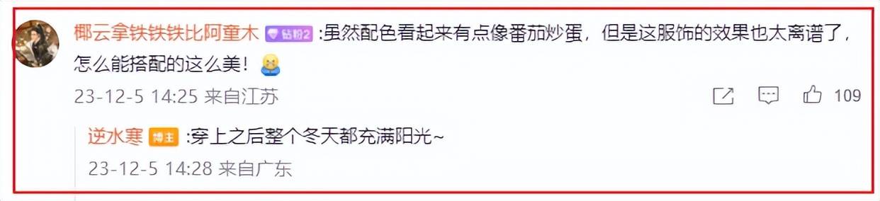 甚至有玩家表示:虽然配色看起来有点像番茄炒蛋,但是这服饰的效果也太离谱了,怎么能搭配的这么美!