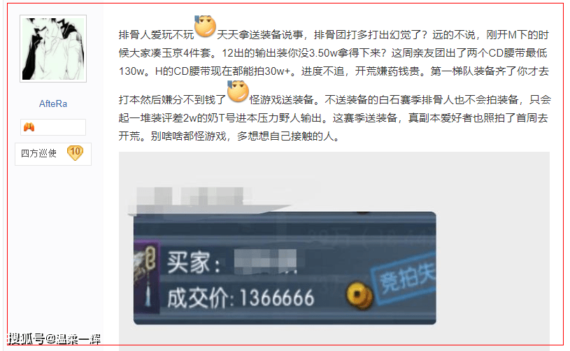 也正因为如此他才如此反感《逆水寒》送福利,认为剥夺了他刷副本的乐趣,于是才想号召和他拥有相同感受的玩家一起冲官方,但没想到帖子发出去后应声者虽有一些,但也有不少人反驳。