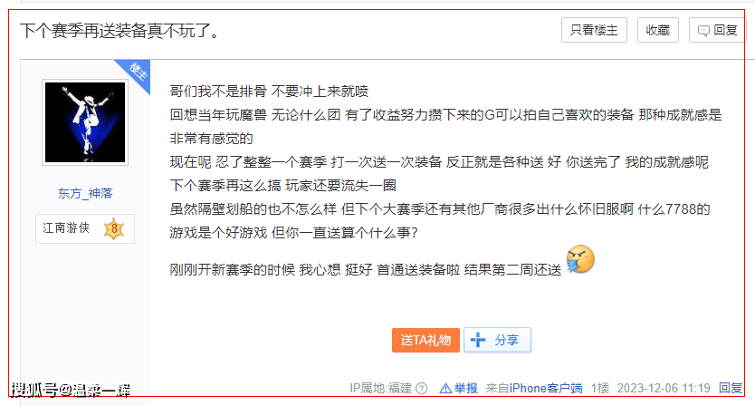 就在昨日,有《逆水寒》玩家在贴吧发言,声泪俱下的控诉官方这一赛季给的实在太多,动不动就各种送养成材料、装备,让他没有了“成就感”。