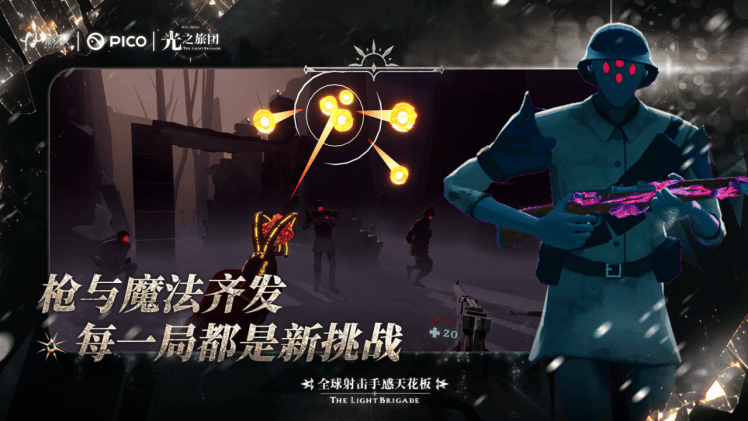 2026年2月5日,备受期待的 Roguelike VR射击大作《光之旅团》正式登陆PICO平台。该作此前已在Meta平台发行,凭借其业界优秀的射击手感与真实的枪械物理反馈,获得了全球玩家与专业媒体的一致好评。游戏不仅将枪战与光魔法深度融合,更以极具仪式感的光暗剧情,营造出独特的沉浸体验。此次由国内领先的VR内容发行商影核引进,并针对PICO平台完成专属适配,意味着中国玩家也能在本土设备上,原汁原味地体验到这款射击手感一流的作品。