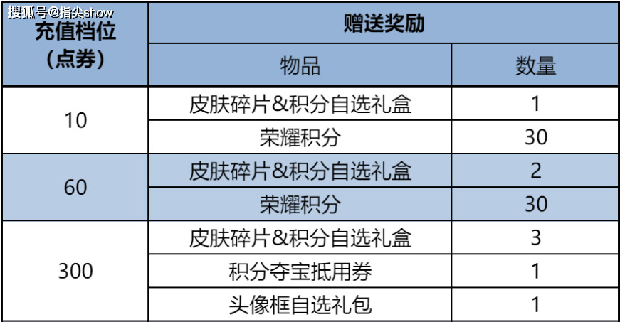 这个也比较建议大家长期坚持,长期党只建议走这三个充值档位,1/6/30,当然了,虽说皮肤碎片性价比提升,但皮肤碎片和积分自选礼盒,我觉得还是后者的质量高一点。