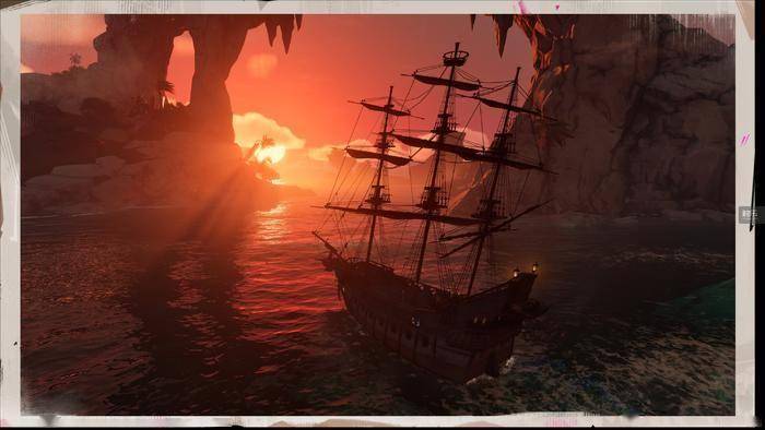 与之对应的是,《遗忘之海》慷慨地刻画了海洋部分的水体效果和天空光照,就我的观察,游戏的海洋水体有物理特性,会受到天气影响,不同天气状态下海面的波浪不同,船只会在海面上起伏,十分上等。而且游戏对光照的使用十分洒脱,黄昏时的光影令人十分难忘。我玩了一段时间后,发现这种设计是有必要的,因为游戏在海洋上探索的部分占比不小,相对而言海洋场景更单调空旷,因此增加足够多的水体和天空效果,可以让人不会很快感觉无聊。