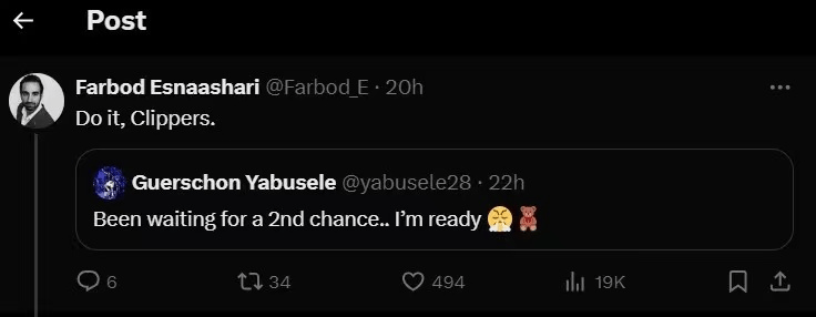 快船记者最先转发小熊的求职社媒