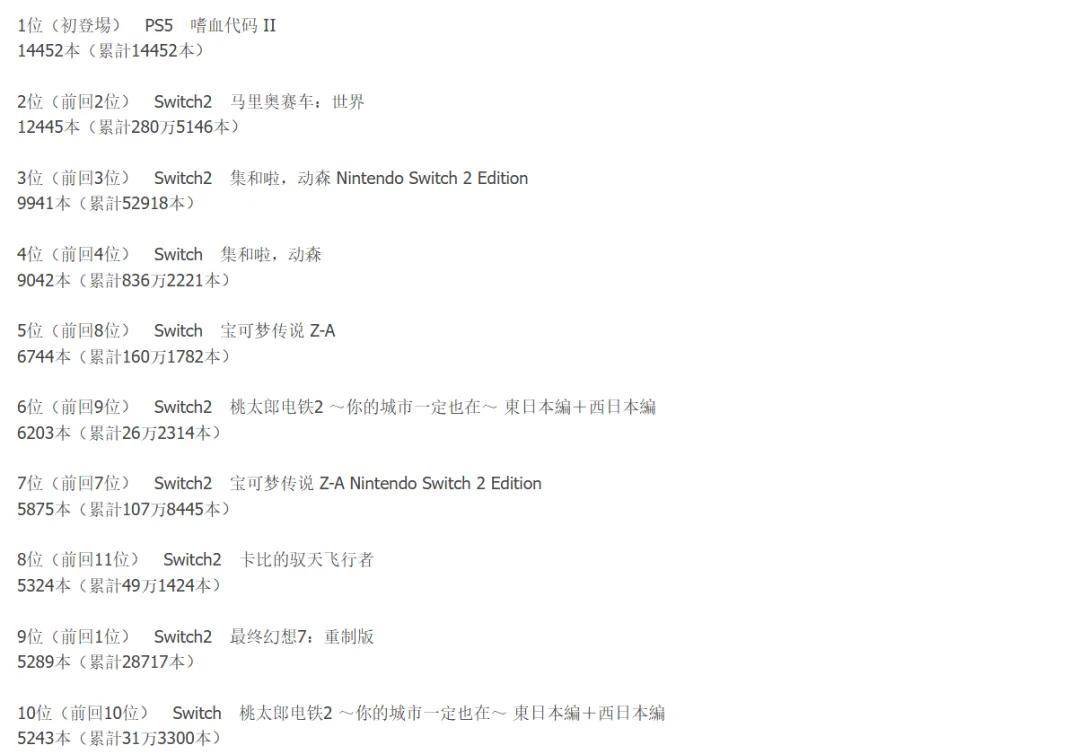 但放眼望去,前十中仍有九席被NS系平台游戏占据。