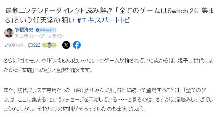 任天堂直面会发布后,虽然玩家反响不佳。但业界专家多根清史却从中看到了不一样的东西。
