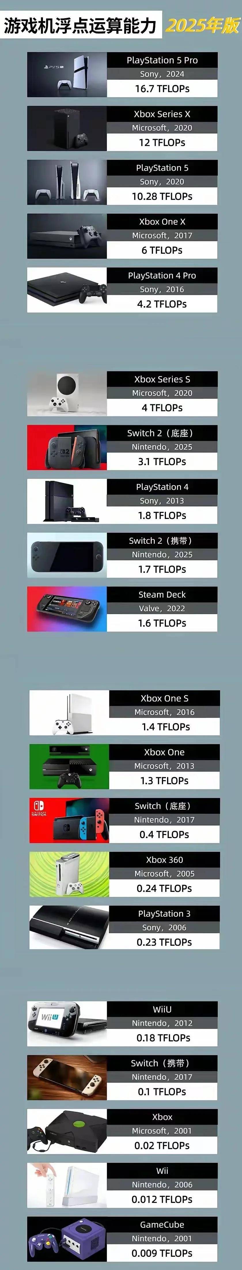 近日,有网友整理了主流游戏的浮点运算能力,大家终于可以一目了然了。