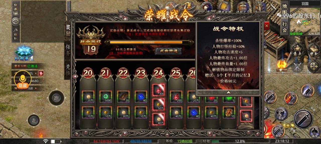荣耀战令也就是我们说的特权,战令里面一共60级,98块钱就可以开启,开启完成之后就可以每天做做任务就可以获得经验,经验到了一定的层数就会获得对应的奖励,60层的奖励是一个令牌,名字叫阴阳乾坤,这个令牌是散人可以媲美单笔充值3888的十方天地令,而且60层前面的奖励也可以助力玩家前期更好的升级下大陆。
