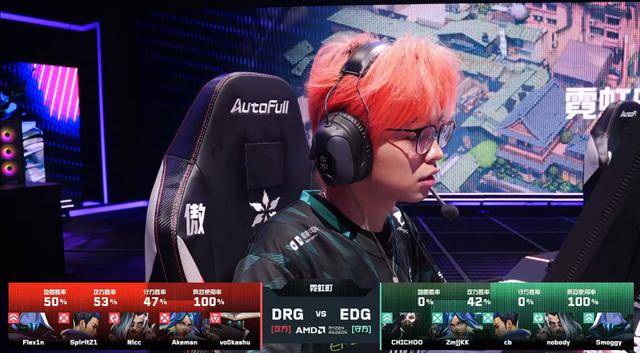 上半场DRG进攻一直无法控下中路,Nicc的盖可拿信息优先,皮蛋清点作用不大。反观EDG防守一直控中路,并且几乎每回合都能读到DRG,EDG也是打出六连胜。