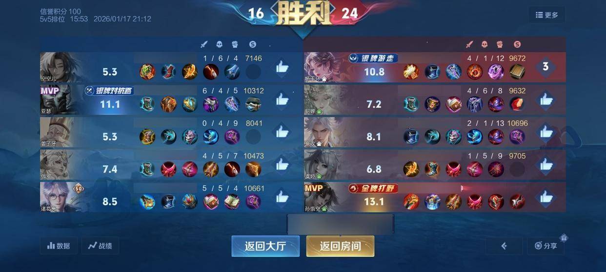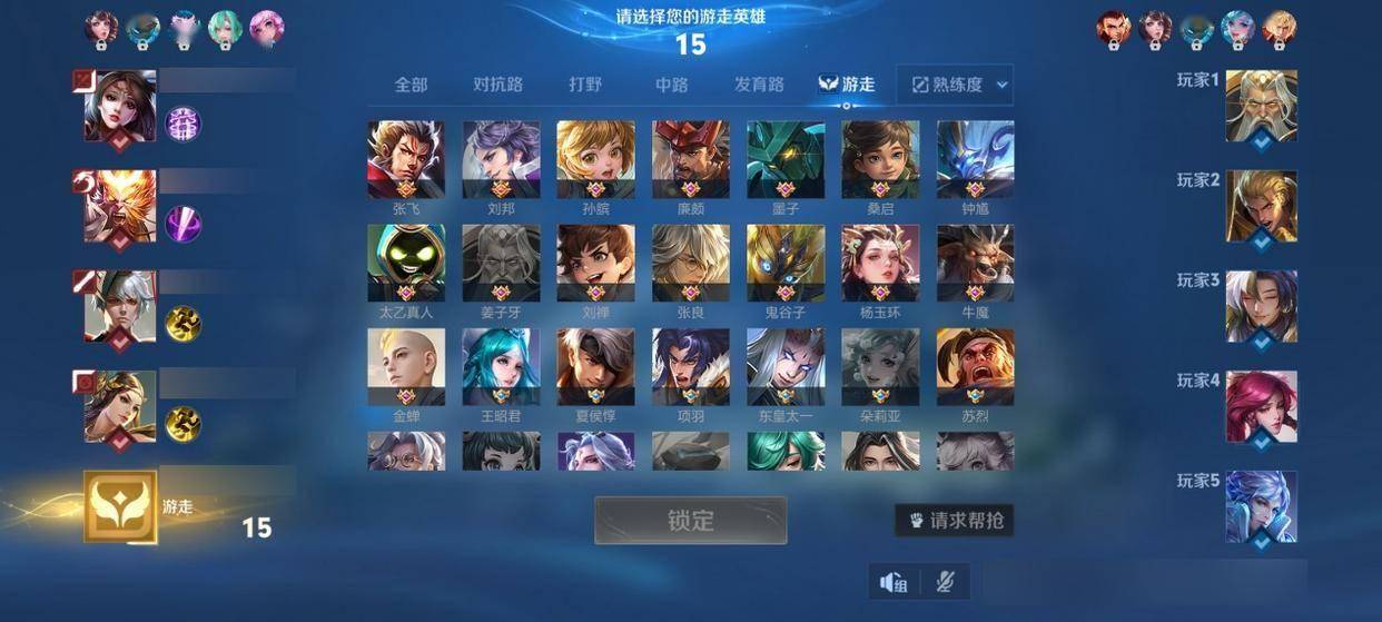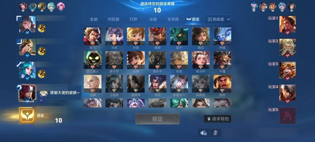 这局可以和我方某个队友组成组合的一些软辅功能辅都可以,比如张良王昭君,或者是杨玉环,又或者是拿一个桑启元辅都是可以的。