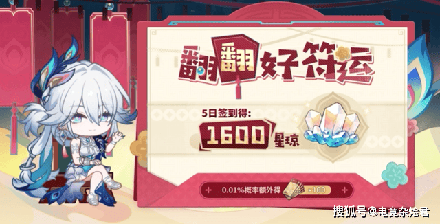 4.0版本上线后,还有“翻翻好符运”活动上线,活动期间玩家每天登录可翻开一张爻光送的吉签,签到5日共计可获得1600星琼。如果玩家足够幸运,还能通过0.01%的概率额外获得100抽,看来见证大家欧皇血统的时刻到了!