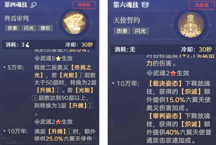 其二则是很多朋友都在反馈千仞雪即使有了红2星,怎么长图也很难在一波输出中打满90层闪光呢?这里有个核心问题就是千仞雪的普攻速度问题,而如果大家手上的千仞雪达到了红4星且激活了10万年魂环,则6魂技提供了40%普攻加速就能大幅改善这个闪光状态的积累速度,这点也是千仞雪的部分使用门槛,甚至都不是数值方面的门槛,更多是机制上的优化,所以大家也可以说千仞雪的完整门槛依然要达到红4星才行。