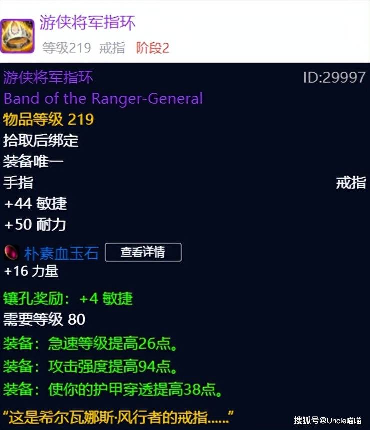 目前时光服风暴要塞这个团本,除了凤凰奥的灰烬一骑绝尘之外,装备的热度还是低于毒蛇神殿的,第一款风暴要塞必入极品装备的话,喵叔给到的是凯王子掉落的游侠将军指环,虽然说整体性对狂暴战来说,不如毒蛇神殿的邪恶侵犯指环搭配远古征服指环,但是他依旧可以作为第一梯队首选戒指,当然需求最刚性的还是盗贼和德鲁伊大兄弟了,目前均价基本1500金币左右浮动,一个红色插槽多香都不知道,可以闭眼入!