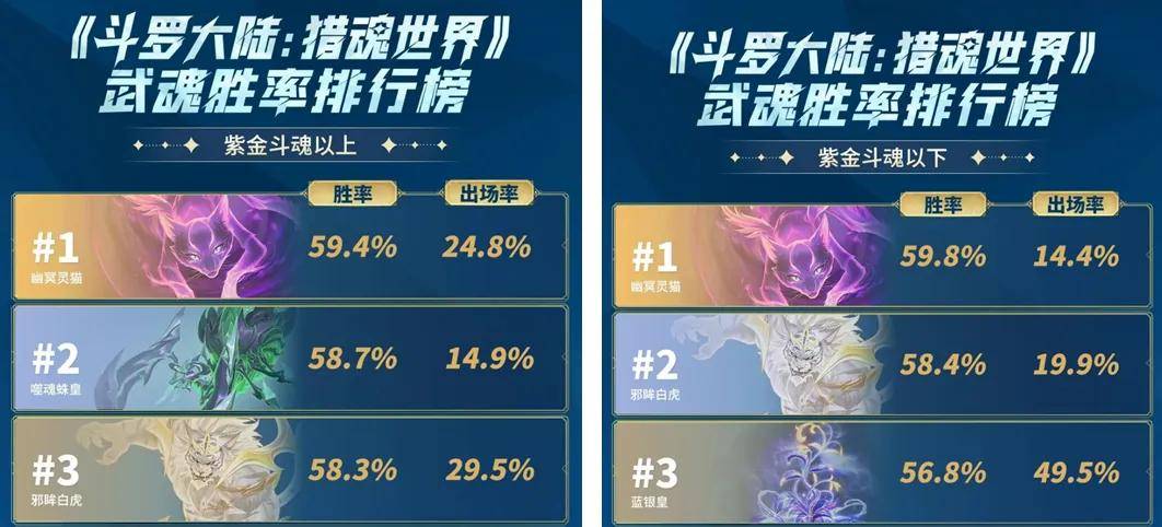 今天官方也是公布了1月份的斗魂对决胜率榜......在这个榜单上其实第一名嘛还是有点出乎大家意料的,不管是紫金以上还是中低段位,居然这波双榜的第一名都给到了朱竹清,而且朱竹清在双榜上的胜率也非常接近,达到了近乎恐怖的59.4%和59.8%,这个数据在过去也只有宁荣荣、蓝龙等当时的顶尖角色达到过。