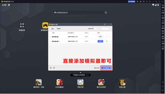 2. 下载安装完雷电模拟器后,在雷电模拟器右侧栏位中选择多开,随后选择新建模拟器。