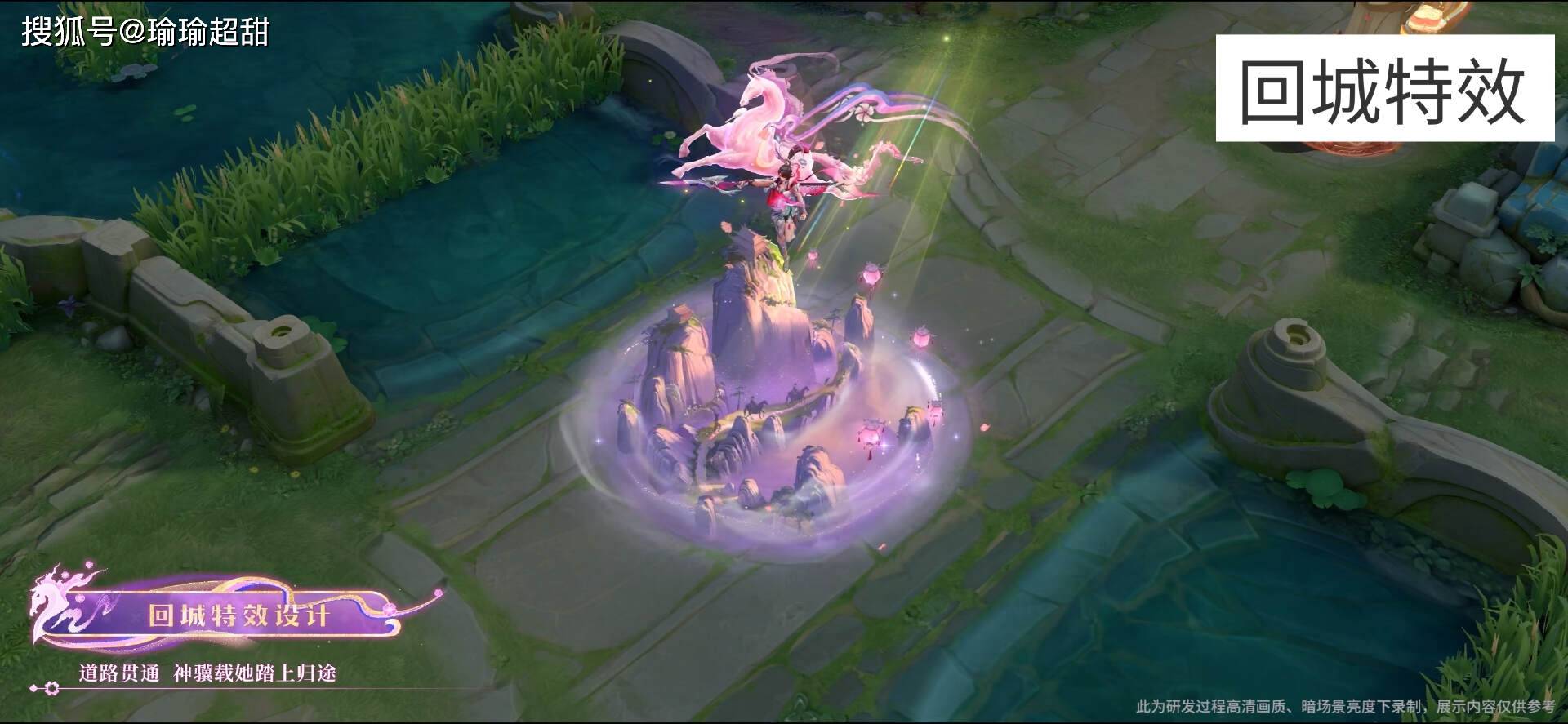 最后就是回城特效,也是我非常喜欢的一种类型,特别是最后一下,云缨和马儿站在高处的时候,展现出来的效果还是比较惊艳的,还可以看到,在山和山之间有一条路,我认为这个回城做得非常不错。