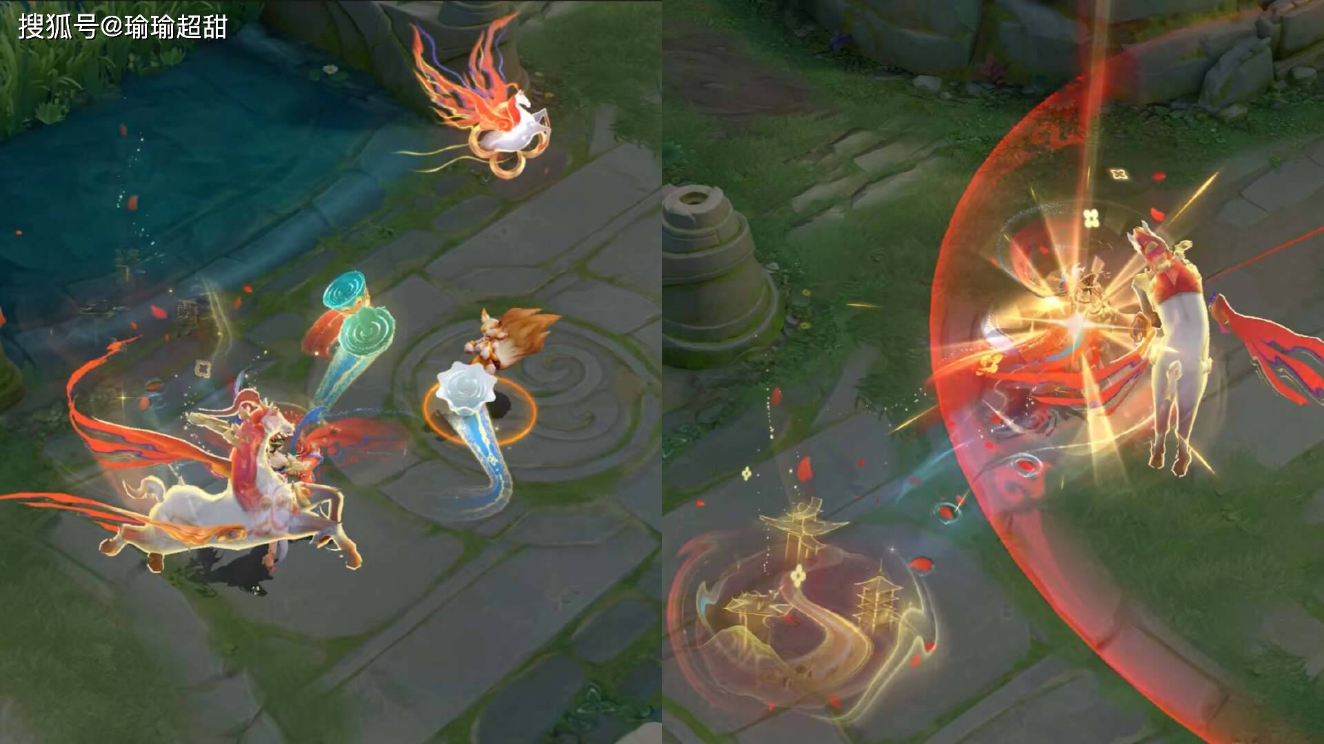 然后就是一技能效果,释放出去之后,可以看到一匹马向前奔腾,这个效果还是比较震撼的。然后一技能是来回两段的,在回来的时候,那个马就好像有翅膀一样,那个速度极快地回飞,视觉效果确实展现出了一种非常高级的感觉。
