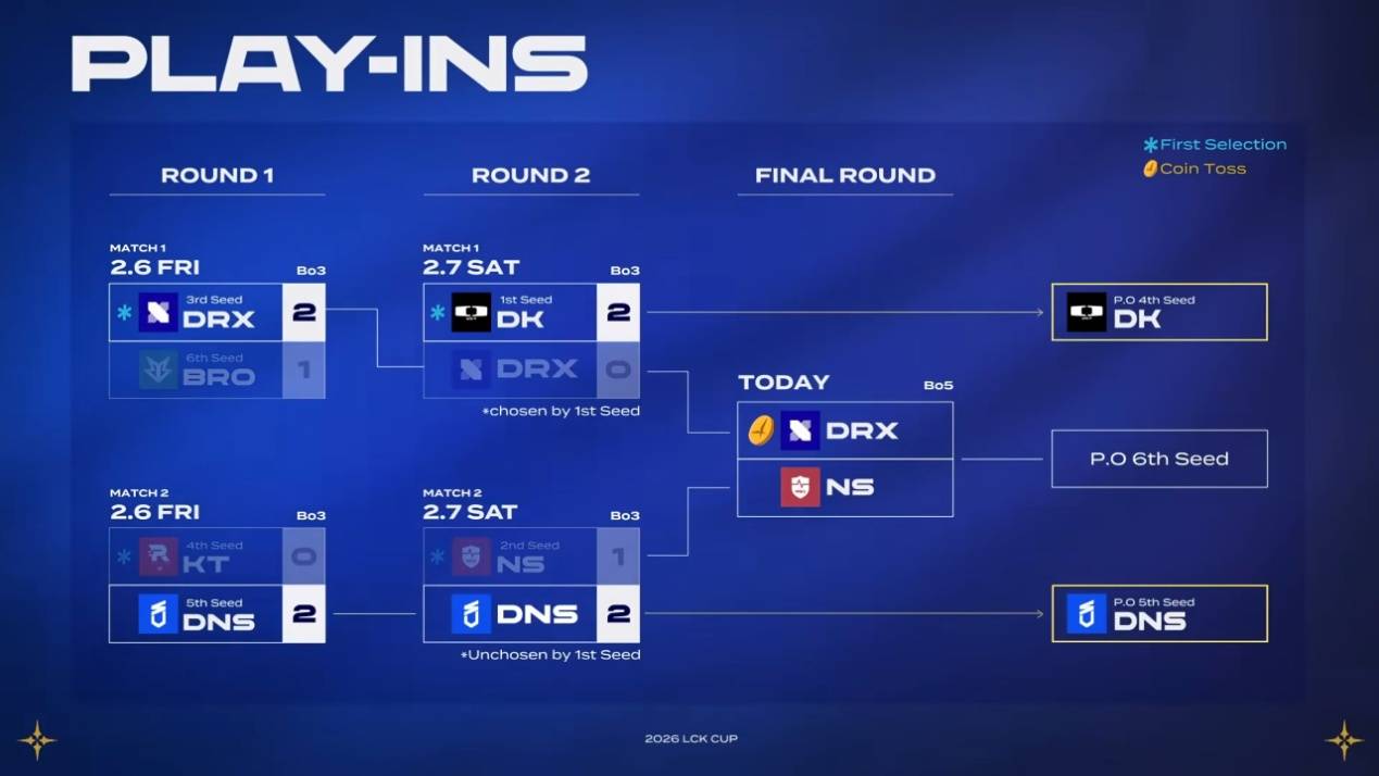 率先进行的比赛是BFX打DNS,将会在2月12日开始,然后是DK对阵DRX的比赛,这两场比赛结束之后,GEN和T1将会分别选择自己的对手。