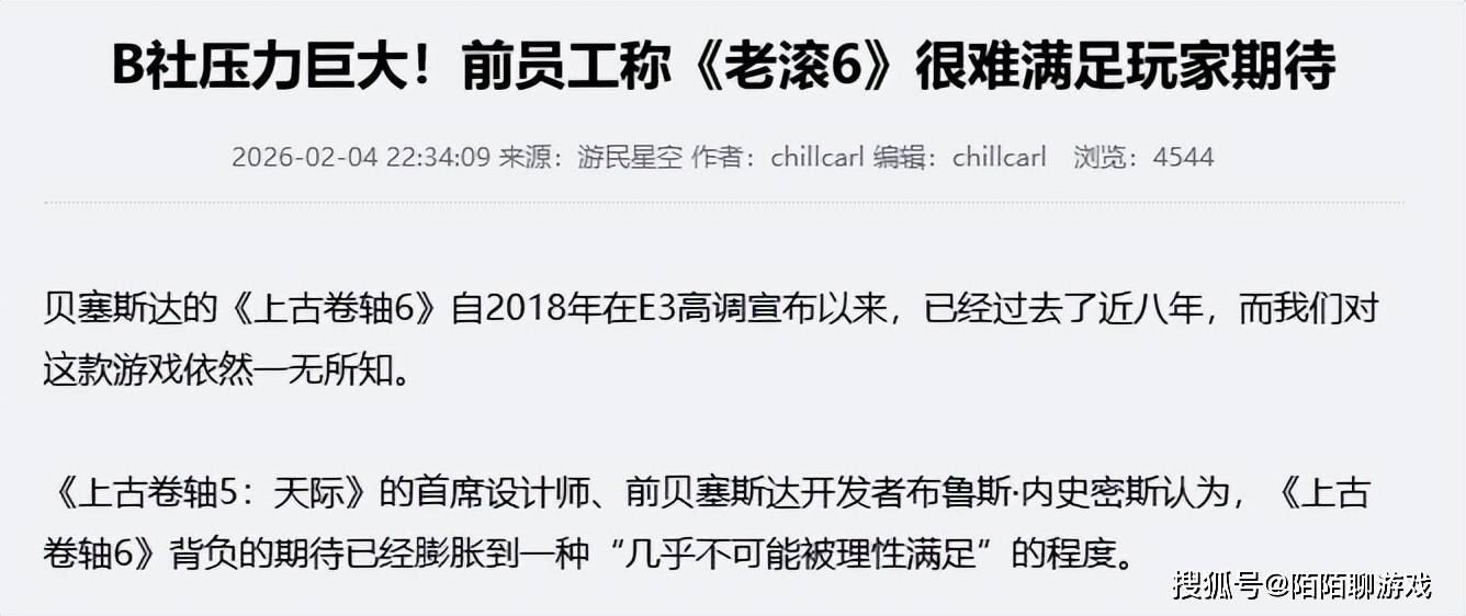 也正因如此,自B社说要做老滚6以来,它便承载了无数期待,粉丝们苦等多年,盼着它能超越前作。但近日B社员工的一则爆料却浇下冷水,透露新作在玩法创新和内容深度上,或许难以完全满足玩家日益增长的高预期,引发了热烈讨论。