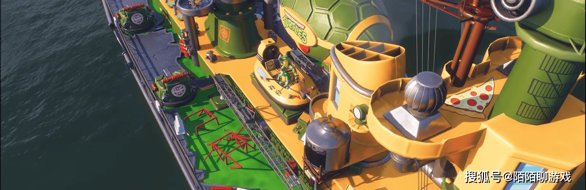 那不勒斯号的涂装可以说是忍者神龟味拉满,它全身都是主角团的绿色和黄色配色,还有他们赖以生存的下水道水泥的灰色。而且还在各个地方都安排了披萨图标,致敬了喜欢吃披萨的人设。