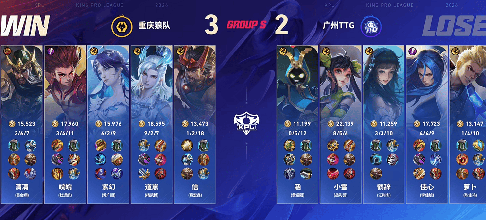 KPL精彩继续!关注赛程的都清楚,目前来到了第二轮的大战,对于每个小组的前两名,也是第二轮S组的战队,网友们都关注,毕竟都很好奇,究竟当时分组的时候,哪个组是最强的。目前来看,2组获胜了,毕竟狼队太争气了,连续击败了情久和TTG,为2组争光了。不得不说,换掉归期和小胖之后,狼队真的蜕变了,清清加皖皖,这才是狼队的完全体啊,目前这个状态和战绩,小胖当摇旗手,也是心甘情愿的,电竞就是残酷的。
