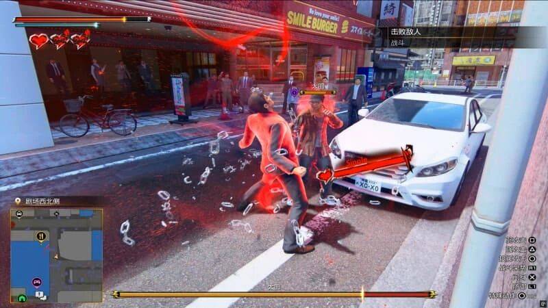 老玩家对“堂岛之龙·极”不会陌生,场地里有什么自行车、板砖、匕首、花盆拿起来就能用,街头械斗+拳脚攻击依然稳定输出。本作特别对精准闪避后的反击机制进行了强化,成功回避敌人攻击后,按下攻击可以直接打出热血动作,从而暴击造成大量伤害。敌人攻击抬手也比较清晰,虽说有时候会被特效光线晃到,但总体还是很好躲。