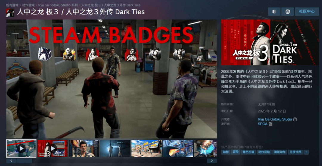 2月12日,《如龙 极3》及其外传作品《如龙3外传 Dark Ties》将在Steam、PlayStation以及Switch 2等多平台正式发售。本作除了简体中文字幕外,还将包含中文配音,为国内玩家带来更沉浸的体验。