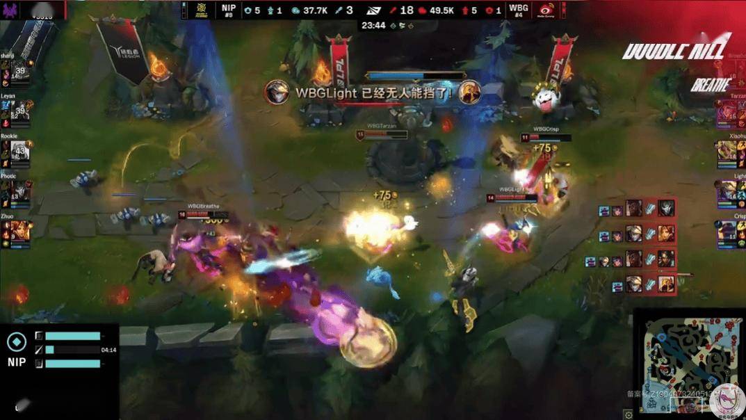 小龙河道一波,巢虫河道一波,开局11分钟的时间NIP被WBG打了一波0换5,全员阵亡一遍。
