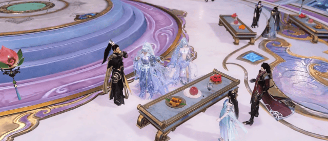 还有线上这场氛围感拉满的天宫瑶池家宴!每一位少侠,都能登上天宫,抛开所有烦恼,过上无拘无束的神仙日子!灵骥无羁,不困劳尘,脚下是缭绕的仙雾,眼前是绝美的瑶池盛景,身边还有各路少侠相伴,品一口香甜蟠桃,沾一沾新年福气,再点上一盏花灯,看漫天烟火绽放,绚烂的星光编织出星宿图谱,随手一拍都是绝美大片,身穿灵骥驰春信时装的少侠,更是把这场烟火盛宴衬得愈发惊艳,氛围感直接拉满。