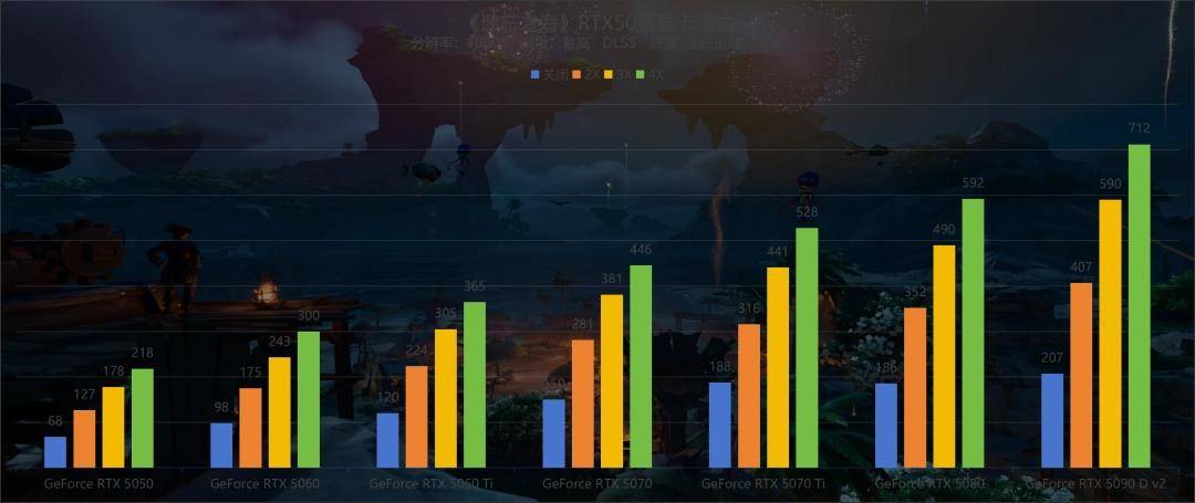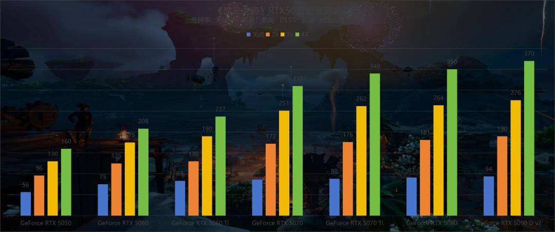 而来到挑战最为严峻的4K分辨率下,强者的实力才算真正展露无遗了——我们手头的这张GeForce RTX 5090 D v2,无论是在开启还是关闭光线追踪的情况下,都能以大幅领先的帧数优势把其他几张显卡远远甩在身后,尤其是在开启DLSS 4多帧生成后,它在全开光线追踪时还能跑到接近360的帧数,着实让人惊讶。不过好在其他显卡的表现也都过关,包括GeForce RTX 5060 Ti在内,开启光线追踪和4倍多帧生成后,平均游戏帧数均能破百,如果你手头正好有一台显示效果足够好的4K显示器,那么只要一张现阶段主流价位的显卡,你就能在《遗忘之海》中轻松获得最高画质下足够流畅稳定的游戏表现。