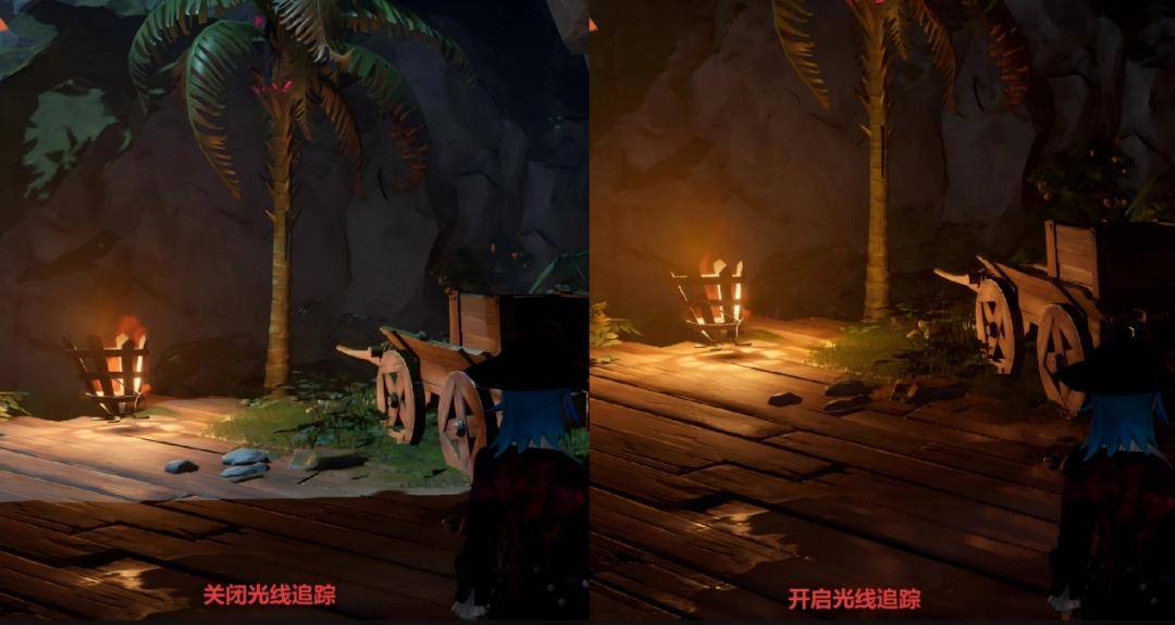 相比之下,开不开光线追踪功能,对游戏的画面观感影响还是挺大的。我们在4K分辨率下把游戏画质拉到最高,DLSS超分辨率设置为“质量”,可以看到右侧开启了光线追踪的游戏画面,明显会比左边不开时,展现出了更逼真的环境光照效果和更强烈且自然的明暗对比,大幅提升画面质感的同时,也能让玩家获得更好的游玩沉浸感。
