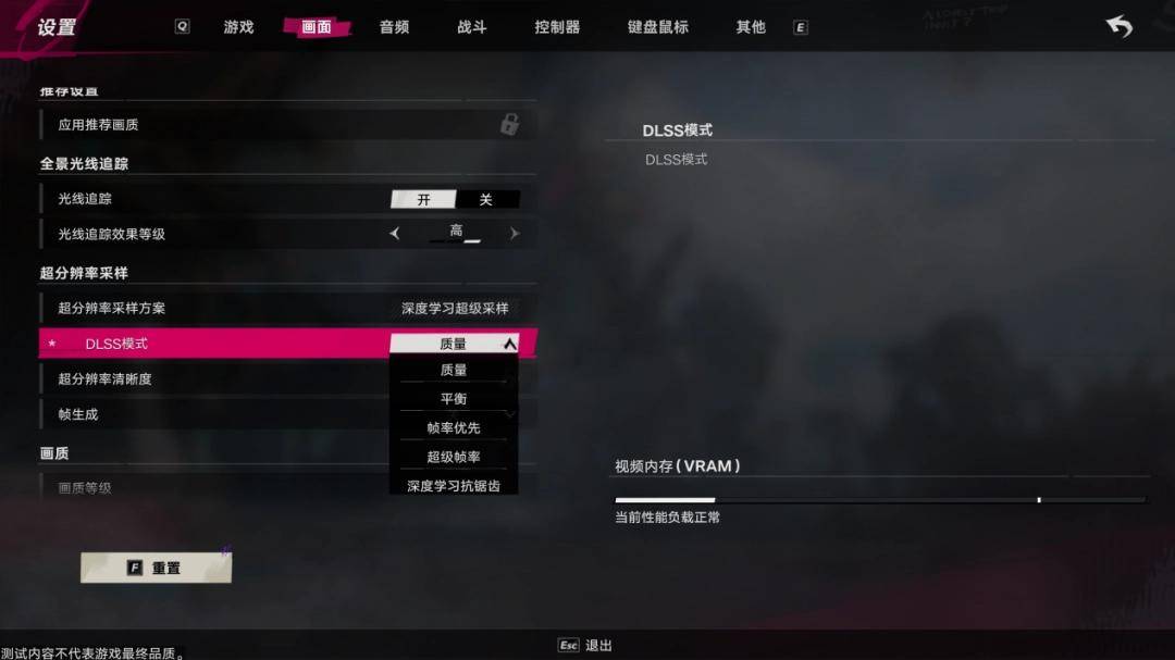 测试版《遗忘之海》原生支持DLSS 4多帧生成和DLSS超分辨率技术,DLSS帧生成拥有关闭、2x(插1帧)、3x(插2帧)、4x(插3帧)四个选项。DLSS超分辨率也可以在超级帧率、帧率优先、平衡、质量和DLAA中进行选择。需要注意的是,开启光线追踪功能后,游戏默认也会开启DLSS超分辨率和帧生成,而为了方便凸显出差异,我们在4K分辨率下统一将DLSS超分辨率设置为“帧率优先”,切换到2K和1080P分辨率时则设置为“质量”。