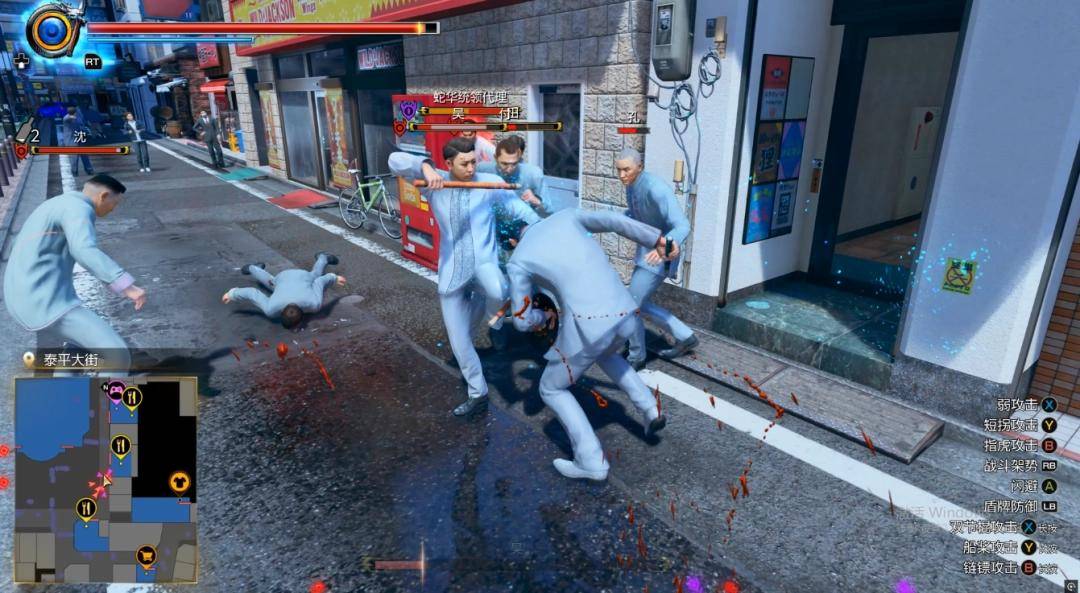 非要去夸的话,也就是处决动作延续了系列的生猛传统。而BOSS转阶段时的QTE,即使手忙脚乱地按错,BOSS后面的强力动作,也依旧具有压迫感。其实按理讲,按错QTE就要进入挨打演出,这本该是最基本且理所当然的事,但考虑到目前市面上很多“演出颇受赞誉”的游戏根本就没做到这点,我就必须再解释一次,为什么“人中之龙”系列的BOSS战斗,可以足够强悍、极具气势。