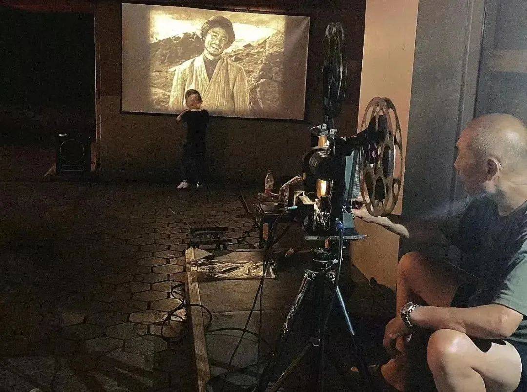 老式电影机播放电影,