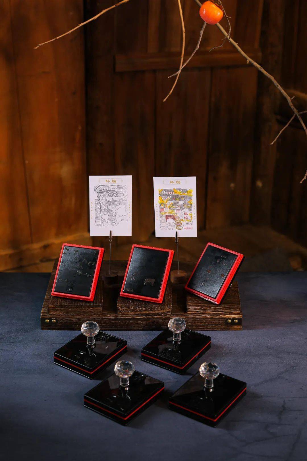 空间位于林坑古村的石板台阶处的一处废弃民宅,经过本次“2023林坑晒秋”策划方山和途(教育)科技有限公司空间设计师的恢复与重塑,保留了建筑空间的古朴但彰显了活力——近20种林坑限定版文创产品和楠溪江特色优质农产品在此呈现,文创产品中不仅有林坑明信片,更还有可可爱爱的林坑限定盖章、平安喜乐系列盖章、宋韵茶点等。
