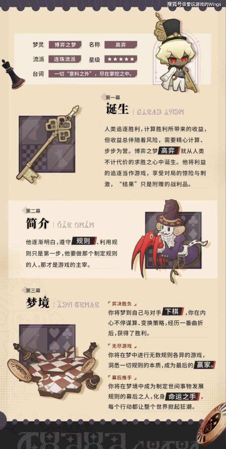 当然,作为《梦游》倾力打造的五星角色,自然有着包含游戏特色的代表性特征存在。比如最新角色——“博弈之梦·高弈”就是人生之中很重要之博弈的具现,试问有谁不想在做梦的时候梦见自己将一切“意料之外”尽掌控于手中呢?作为人类筹谋计算追赢求胜的写照,博弈之梦的形象有些参考经典棋牌魔术师,将自信的仪容与气质充分用立绘展现了出来。而在游戏中,博弈之梦属于“射手”位角色,一系列特设的攻击与标记,再加上肉鸽卡对于远程攻击方面强化的种类繁多,让这位五星角色的战斗搭配变得更加变化多端,却又各方面都很强大,再次回证了“博弈”二字。