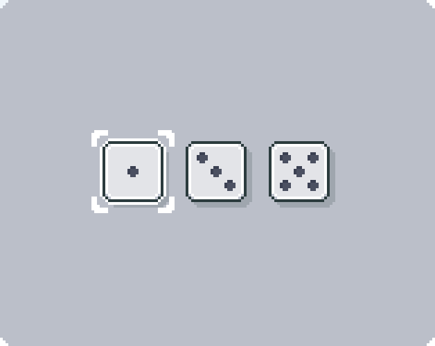 8. 像素风骰子资产包,包含不同交互状态拆分(例如选中悬停),选中高亮光标(2 帧)。素材格式为 png,可用于个人和商业作品。