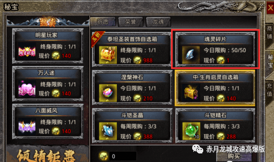 在游戏后期,玩家可以在秘宝商店每天购买50个魂灵碎片,为自己的魂灵之路铺平道路。
