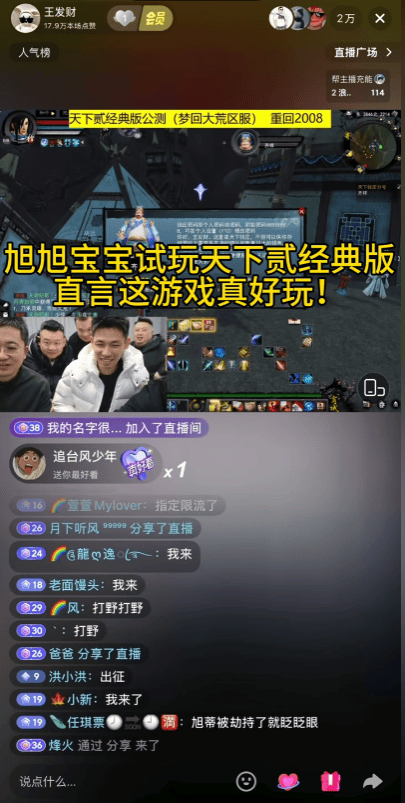 再加上前段时间旭旭宝宝亮相王发财直播间,这也让不少玩家嗅到了机会,很有可能宝哥也会加入战场,这也意味着游戏的金价很有可能会进一步攀升。也正因如此天下贰经典版自开服以来几乎天天爆满,日常进游戏排队更是成为常态。